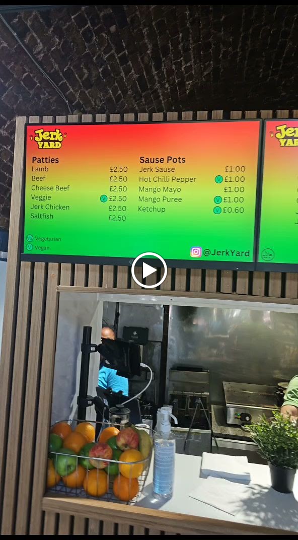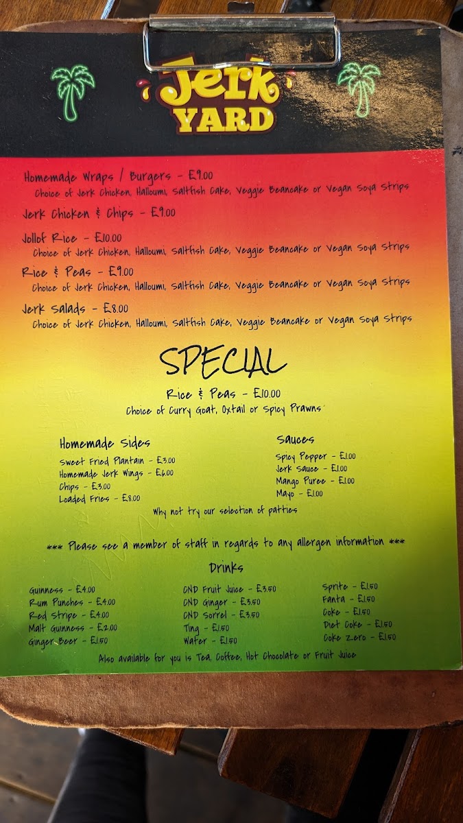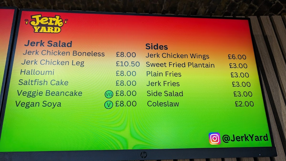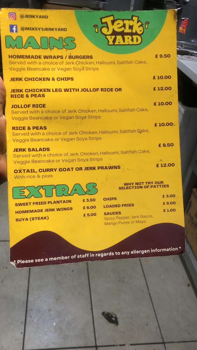 The menu at Jerk Yard offers a vibrant selection of Caribbean-inspired dishes that promise to satisfy a variety of tastes. The mains include options like Jerk Chicken & Chips, which is a classic and flavorful combination, and Jerk Chicken Leg with Jollof Rice or Rice & Peas, which gives a choice between two iconic sides. For a more indulgent option, Homemade Wraps and Burgers featuring jerk chicken offer a satisfying meal for those looking for something portable yet hearty. The sides are equally appealing, with choices like Jollof Rice and Rice & Peas complementing the mains perfectly. Extras like Sweet Fried Plantain, Homemade Jerk Wings, and Suya (Steak) are perfect for adding a little extra flavor to your meal, while the Chips and Loaded Fries provide a satisfying, crunchy accompaniment. The variety of flavors and the deliciously spiced jerk seasoning make this menu a delightful experience for anyone craving authentic Caribbean cuisine.